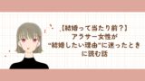 「早く結婚しなきゃ」「次を逃すと終わり…」