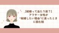 結婚がゴールになってしまうと視野が狭くなってしまって、目の前の相手に対して正しい意思決定ができなくなるよ!自分の叶えたい理想の人生があってこその結婚だよ!